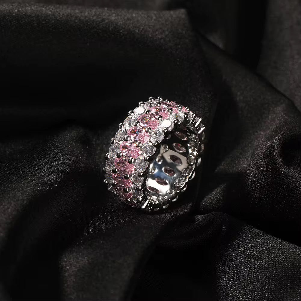 A dreamy symphony of soft pink and icy brilliance, our Blush Radiance ring is where romance meets refinement. Hand-set with alternating blush-pink and white stones in a full eternity design, this statement band shimmers with every move — like sunlight dancing on rose petals.